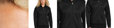 * 100% polyester double-knit * Woven label * Front zipper * Set-in sleeves * Front pockets * Dual inside pockets * Striped rib-knit collar, cuffs and bottom band